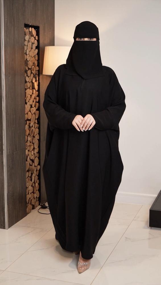 • طول العباية يؤخذ من الكتف الى أسفل الكعبين (من الأمام)