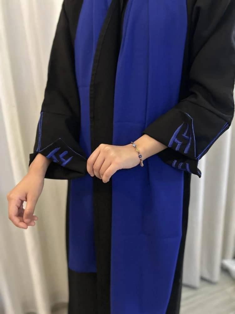 القماش/مينيميت كتان واقفالموديل/عباية نص كلوش قصة Aمع اكسسوريز في الاكمام وتطريز شعار الهلالتتوفر بجميع المقاسات