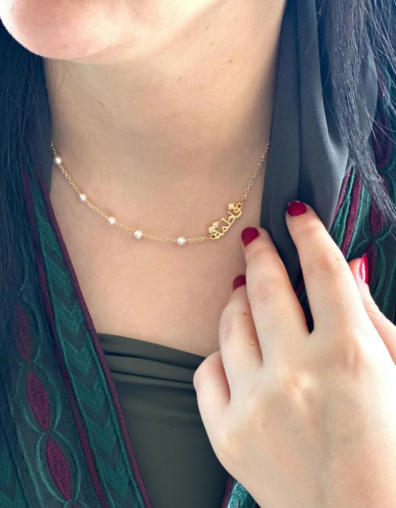 قلادة بتصميم أنيق وإتقانحسب المواصفات التأليةسلسال بالاسم او الحرفمطلي ذهب عيار 21مرصع بالزركون مع شيخة جودة عاليهيتوفر باللون الذهبي أو الفضيضمان ثابت من شيخة علبه هدية فاخرة