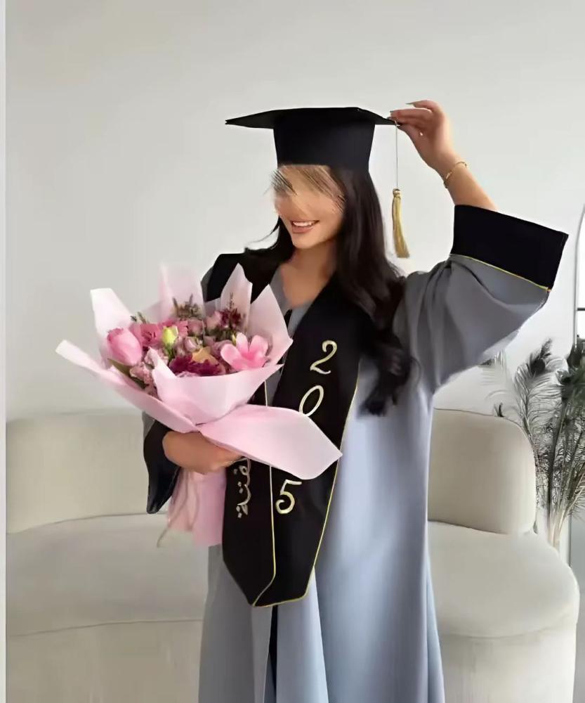 عبايات تخرج مع تطريز الاسم على الوشاح