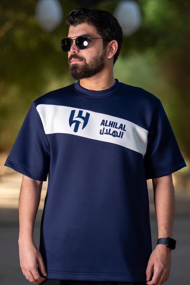 - الهوية: شعار نادي الهلال مطبوع بدقة يمنح التيشيرت طابعاً فخرياً لكل مشجع.