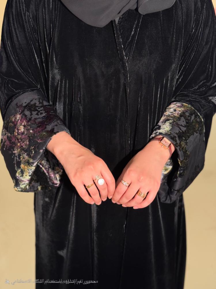 نوع القماش: مخمل اسود + الاكمام شيفون مخمل